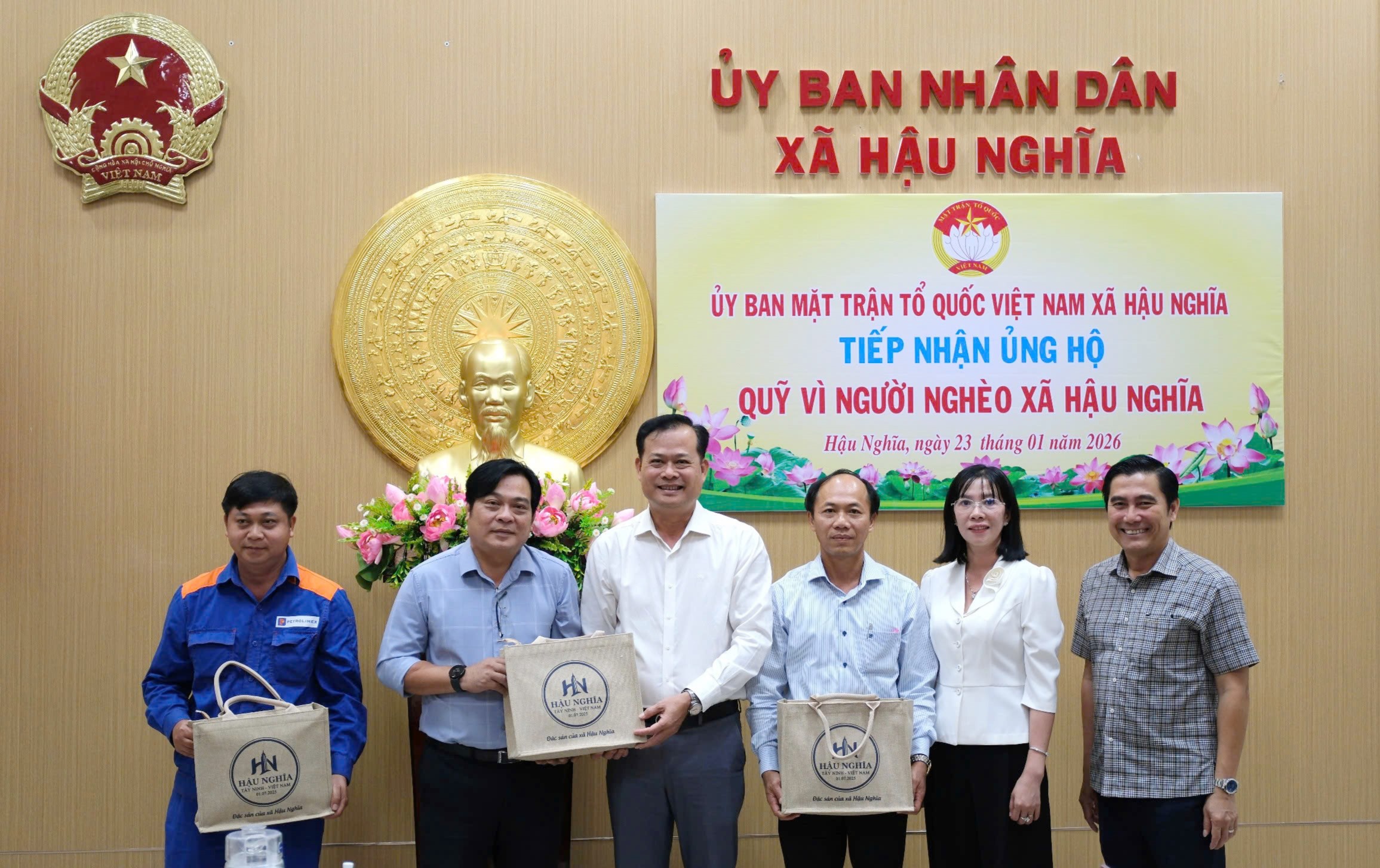 Ngày 23.01.2026, tại Ủy ban Nhân dân xã Hậu Nghĩa, thừa Ủy quyền của Tập đoàn Xăng dầu Việt Nam (Petrolimex/Tập đoàn), Công ty TNHH MTV Xăng dầu Tây Ninh (Petrolimex Tây Ninh/Công ty) đã trao 5 tỷ đồng ủng hộ Quỹ “Vì người nghèo” xã Hậu Nghĩa.