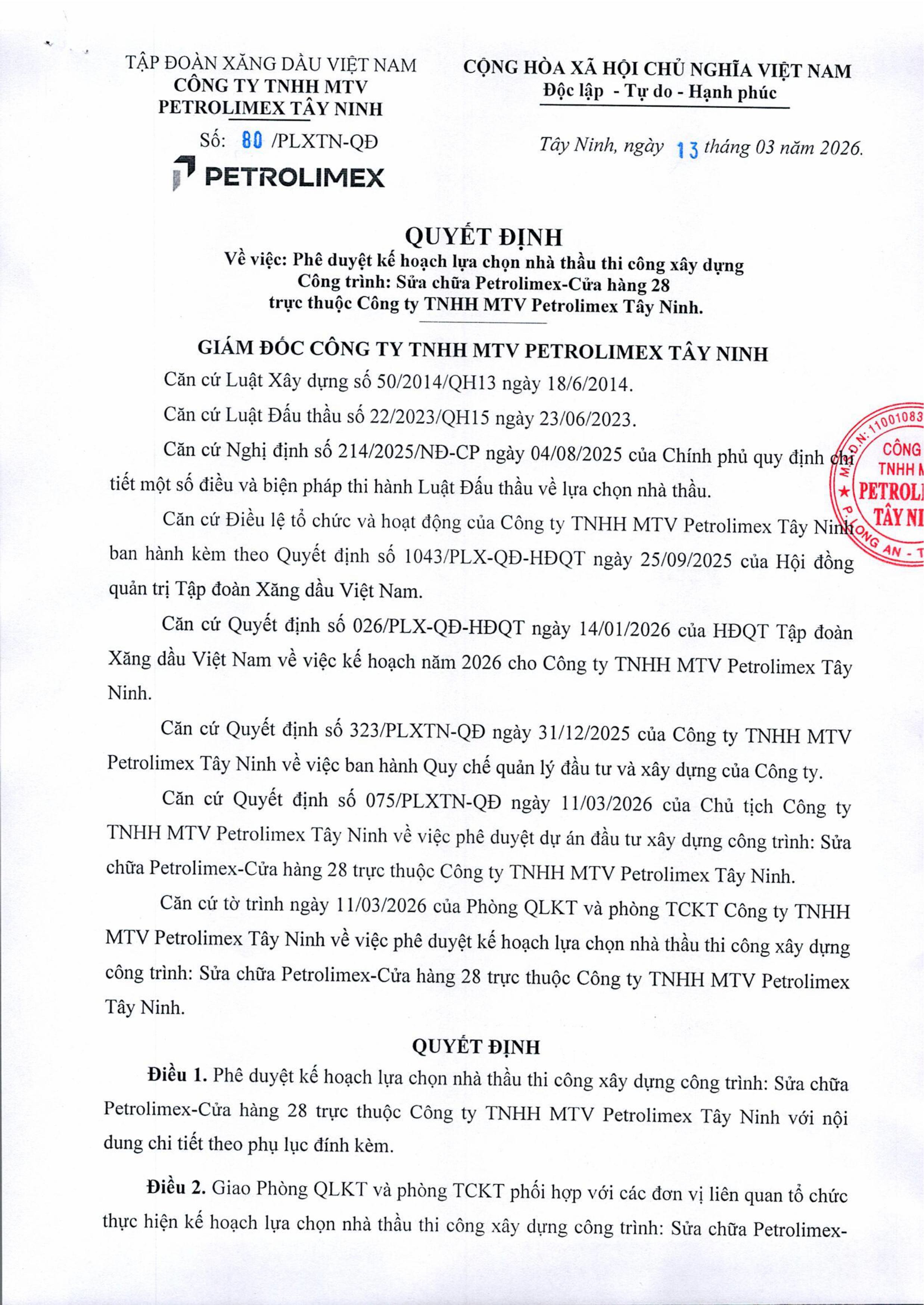 CÔNG TY TNHH MTV PETROLIMEX TÂY NINH PETROLIMEX TAY NINH